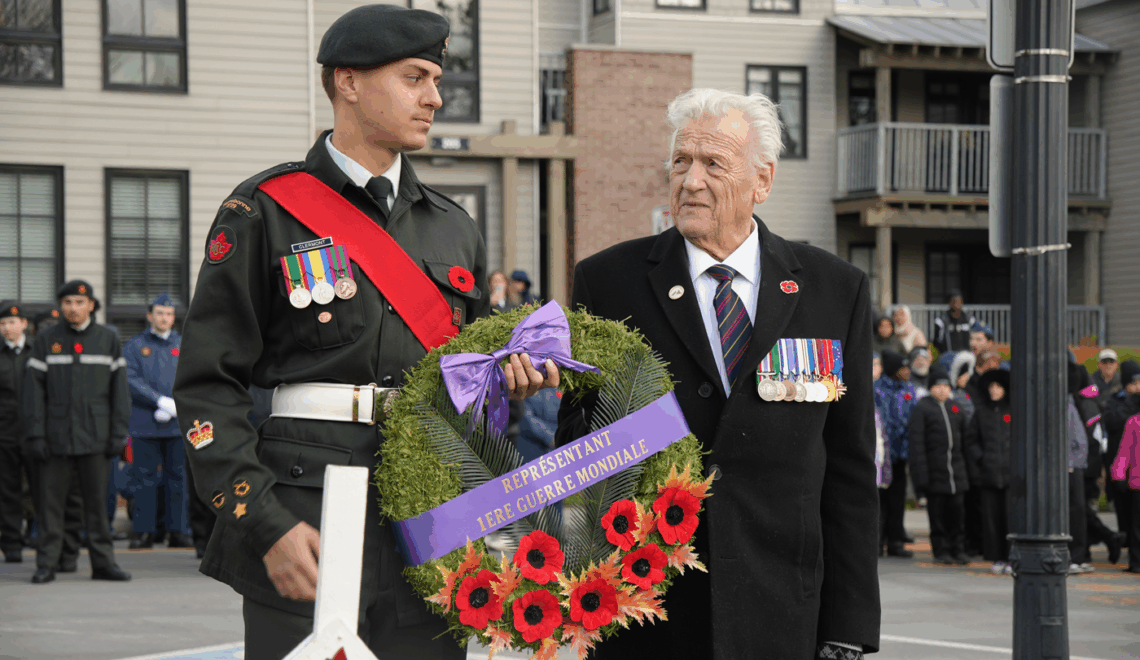 Photo: Rony Sanon L’un est vétéran, alors que l’autre fait ses premières armes dans les Forces canadiennes. Le 8 novembre dernier, la cérémonie du jour du Souvenir les a réuni dans une scène empreinte d’émotion au cœur du rassemblement commémoratif. Elle a réuni Roger Laliberté, vétéran du Royal 22e Régiment, et un jeune cadet du corps militaire, dans un moment symboliquement profond. Roger Laliberté, qui a servi de 1957 à 1969 avec des affectations au Congo et à Chypre, est le fils d’un militaire ayant servi en Allemagne. Très tôt, il a hérité du sens du devoir et du service.