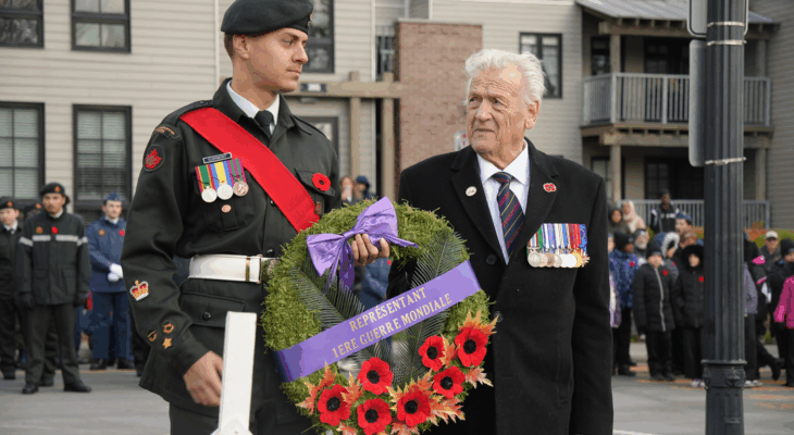 L’un est vétéran, alors que l’autre fait ses premières armes dans les Forces canadiennes. Le 8 novembre dernier, la cérémonie du jour du Souvenir les a réuni dans une scène empreinte d’émotion au cœur du rassemblement commémoratif. Elle a réuni Roger Laliberté, vétéran du Royal 22e Régiment, et un jeune cadet du corps militaire, dans un moment symboliquement profond.